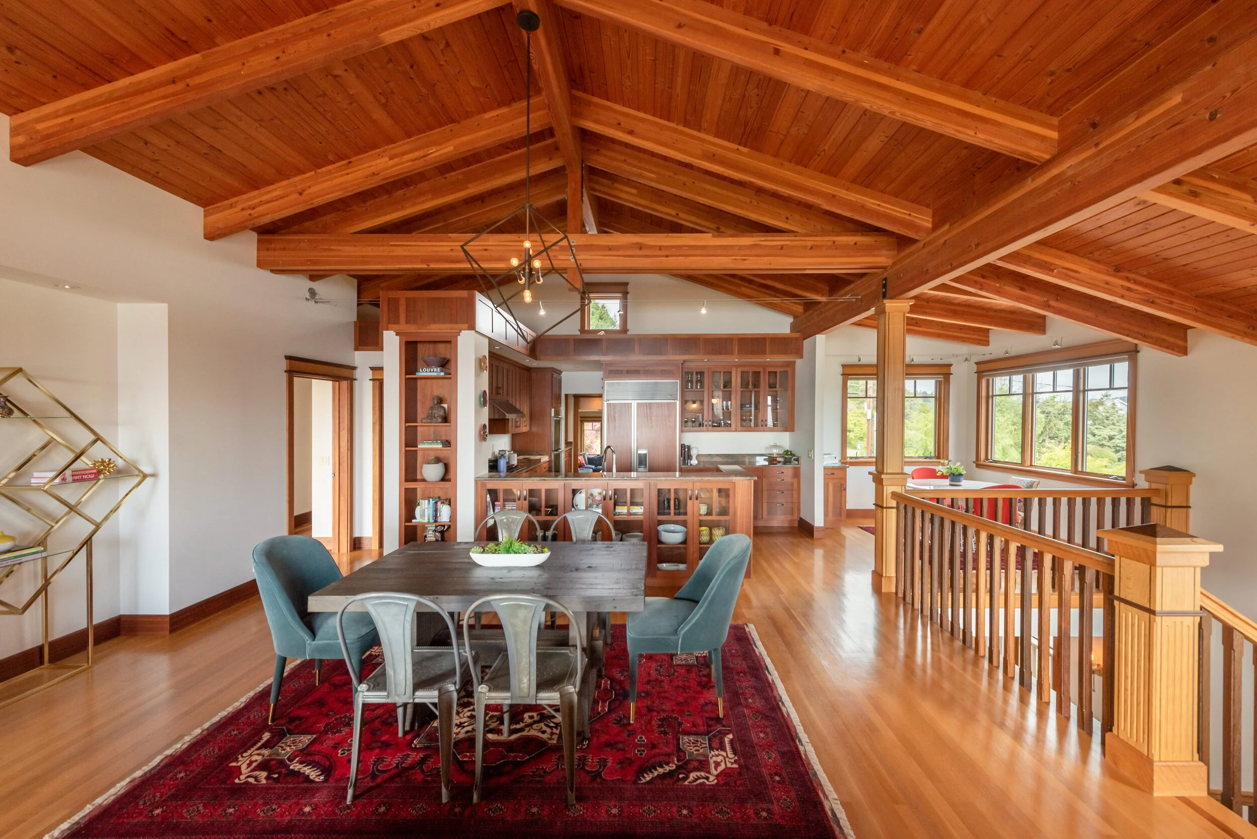 The thoughtfully designed gourmet kitchen allows for the chef to cook in harmony as the kitchen space gracefully opens to the vaulted ceilings of the living room with vast picture windows directing you to the sparkling waters of the sound and the Seattle Cityscape.
